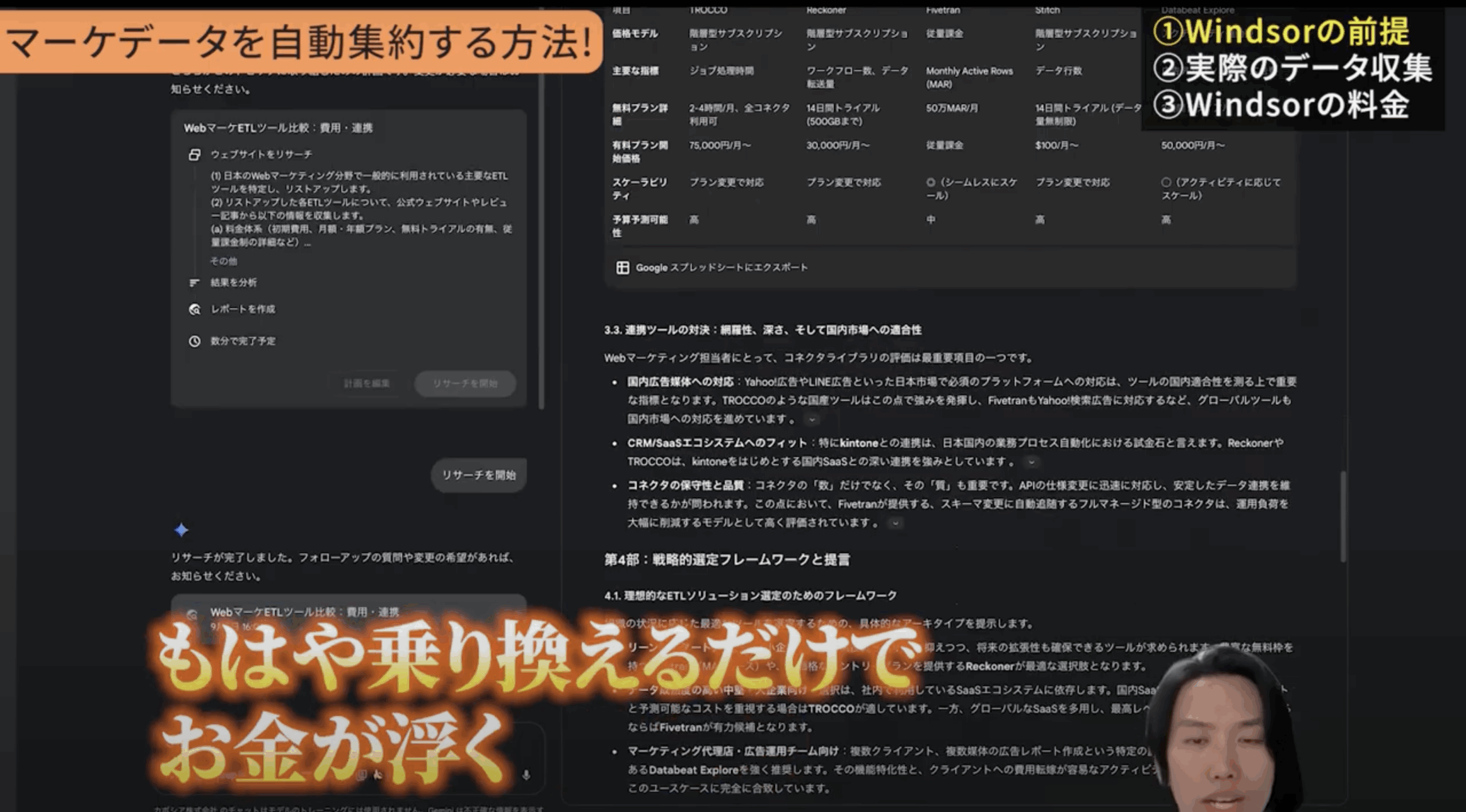 私がこのWindsor.aiに出会い気づいたのは、データ集約における「費用対効果」と「信頼性」の重要性でした。多くのETLツール、つまりデータ抽出・変換・書き出しを担うツールは高額な月額費用がかかるのが一般的です。