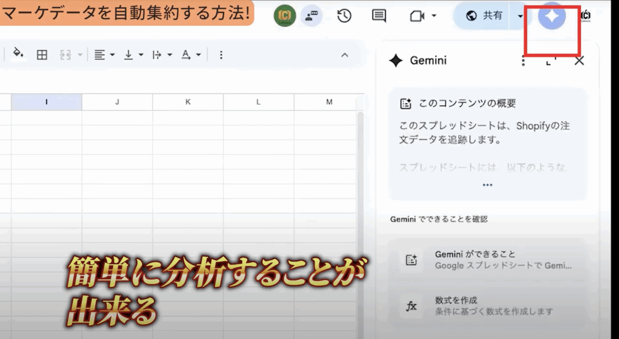 - データがスプレッドシートに自動集約されたら、GeminiのようなAIツールを使って簡単に分析を始められます。多様な分析を視覚的に把握することが可能になるでしょう。