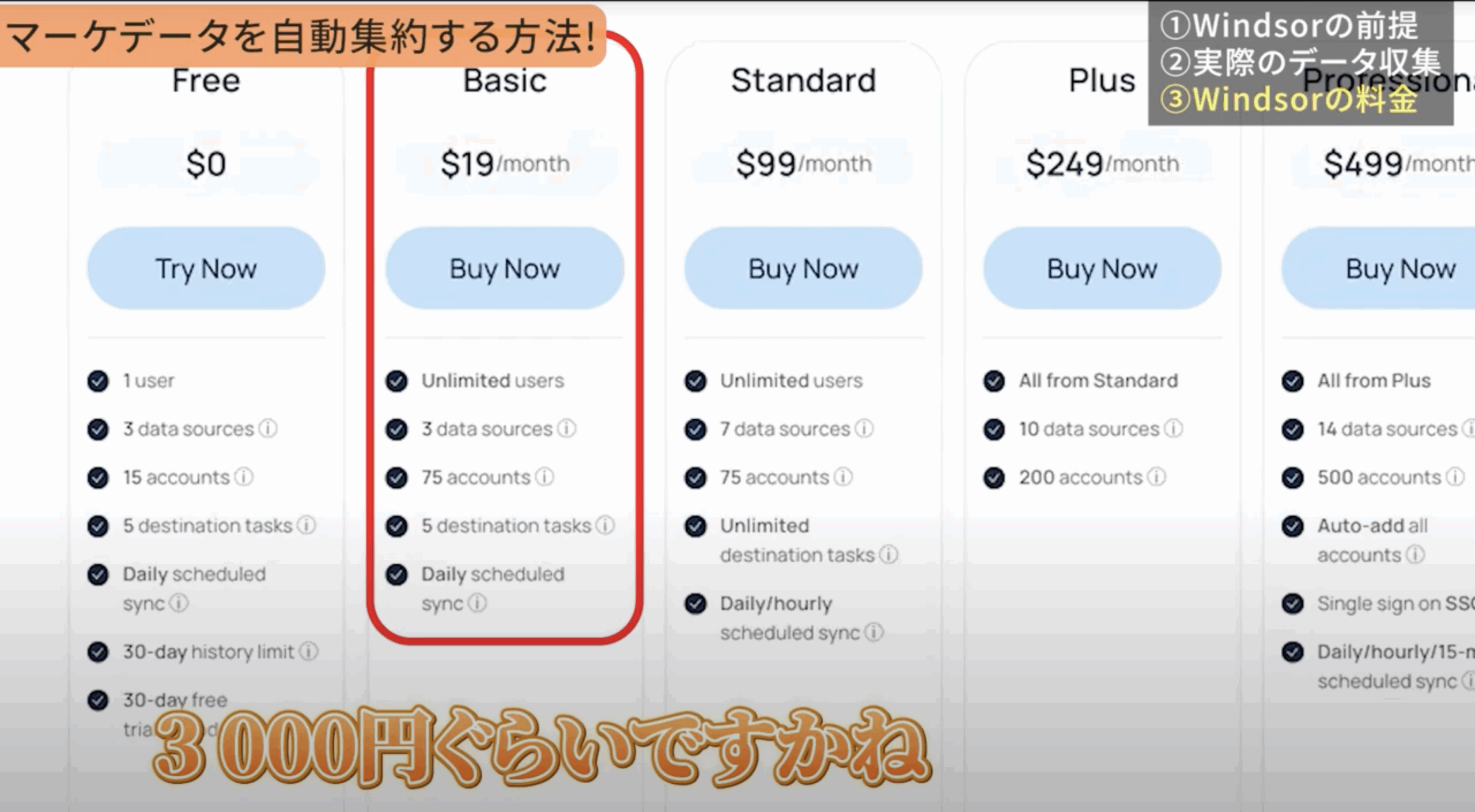 ただし、このWindsor.aiを使ったデータ自動集約の方法にも、いくつか注意点があります。まず、このツールは完全に無料ではありません。